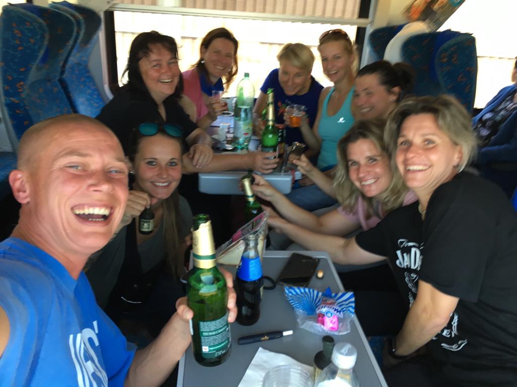 V neděli nás čekala mise "Brno", kterou jsme cestou vlakem odstartovaly na výtečnou. A to napříč faktu, že díky malé chybičce naší technické vedoucí :-) hrozilo, že pokud si nesáhneme do kapes a nezaplatíme jízdné ještě jednou, budeme nuceni druhých 100 km klusat vedle vlaku. Naštěstí díky velkorysosti pana průvodčího a znělého "UND" v podání naší hráčky vyznávající "natur styl", a z dětsví milující pohádku "O Karkulce", jsme si místo běhu po kolejích daly kávu a pivo, a nadále utužovaly týmového ducha. ;-)